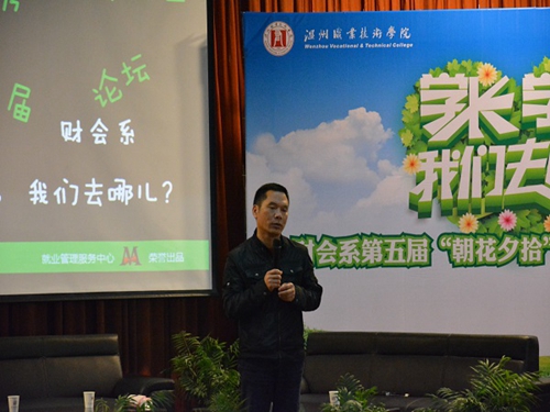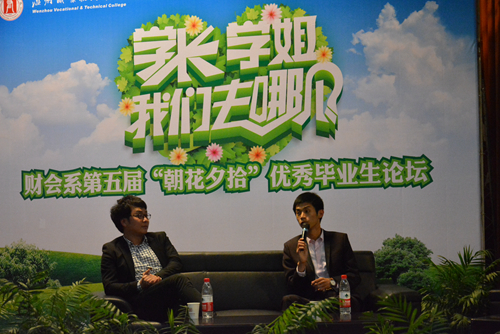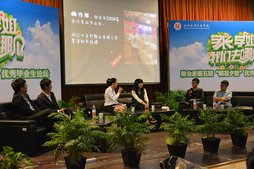 在毕业生离校之际,为引导在校学生合理规划大学生活,积极主动地学习和工作,财会系积极组织在创业、求职等方面取得突出成绩的毕业生,与在校学生开展经验交流活动。4月13日晚上6:30,财会系第五届主题为“学长、学姐,我们去哪儿?”毕业生论坛准时在树人堂举行。财会系主任申屠新飞老师党总支副书记吴冰老师,辅导员王丹霞、相丹红、程红波老师出席了本次论坛。
