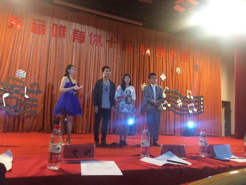 为丰富同学们的大学生活,营造积极向上、健康文明的校园文化氛围,2015年4月26日晚18:00我系在树人堂举办“工商系‘音’唯有你十佳歌手大赛”决赛。大赛由朱婷婷、张栲铭担任主持,邀请到了温州大学张雷、查涛涛老师,温州职业技术学院葛蕊、史潇老师以及去年十佳冠军获得者陈庆克同学担任评委。