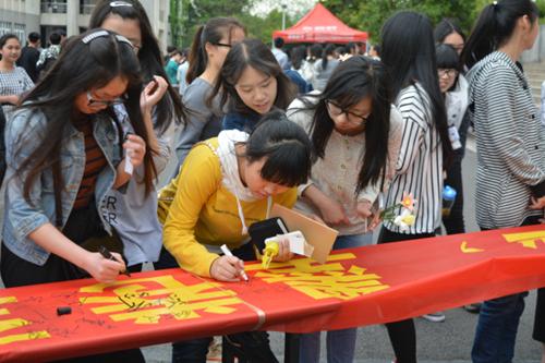 首先,吴书记为读书文化节致辞。她希望同学们可以与书相遇、相识、相知、相爱,通过阅读有所学、有所思、有所悟;希望同学们让阅读成为自己生活的一种方式;希望同学们可以有效利用图书馆的丰富阅读资源,更好享受图书馆的优质阅读环境。随后,三位领导进行了阅读传递启动仪式的剪彩,并与在场学生进行了横幅签字留念活动。仪式之后,师生们参加了读书游园活动,在收获了课外知识的同时,还赢得了精美的礼品。