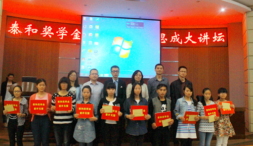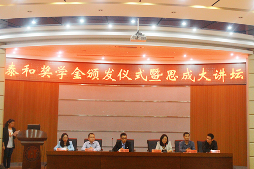 5月6日晚上18:00点,建筑工程系首届“泰和奖学金”颁奖仪式在正德楼罗山厅举行。学院副院长王向红、温州泰和房产营销有限公司总裁林育、温州泰和房产营销有限公司行政管理中心常务副总邱林鑫、学生处处长叶吉波、建筑工程系党总支书记 苏跃飞、建筑工程系房地产经营与估价教研室主任卓坚红、获奖学生和房产专业学生出席了本次颁奖仪式。颁奖仪式由建筑工程系学工办主任余爽主持。