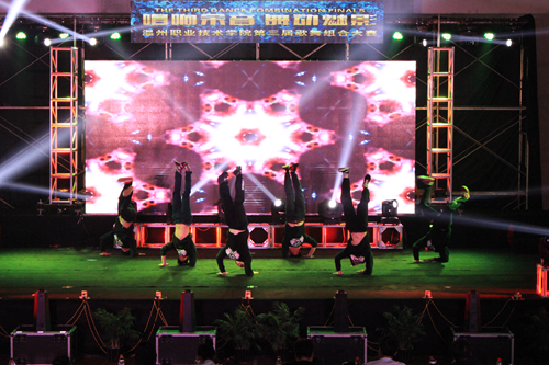 5月17日晚,由共青团温州职业技术学院委员主办,院学生会承办的“唱响余音,舞动魅影”第三届校园歌舞组合大赛在温职院体育馆二楼隆重举行。