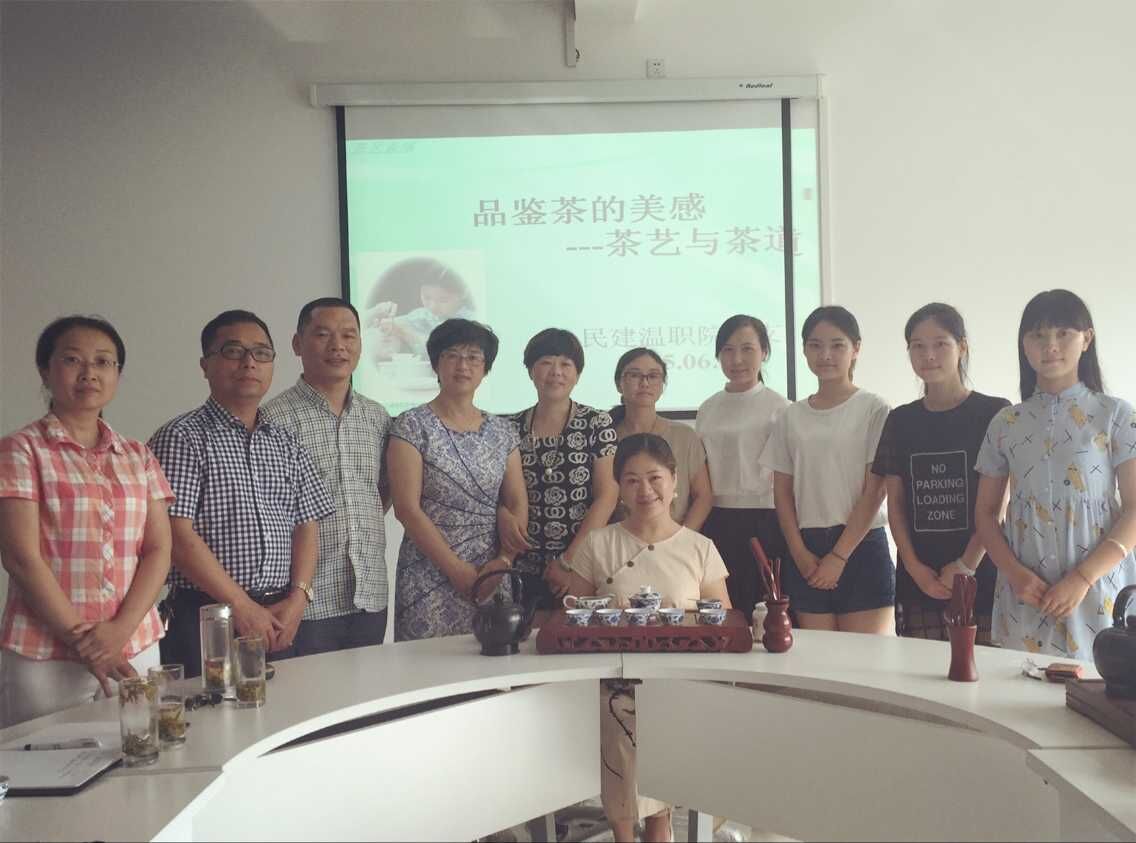 各位老师饶有兴趣地提出了相关问题,并进行了热烈的讨论。三位同学分别表演了祁门红茶、永嘉乌牛早、铁观音等茶艺,并请在座的老师品饮,得到一致的赞赏。几位老师还积极参与其中,学习了茶艺表演。整个活动气氛热烈,大家认为,品茶是一种很健康的生活方式;而学习茶艺的过程,其实也是一个放松自己的过程,在繁忙的工作之余,能领悟到另一番的情趣和满足。