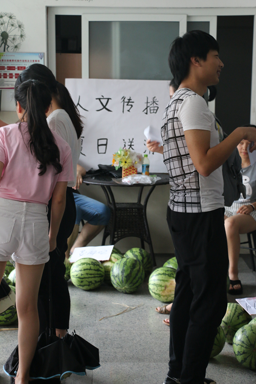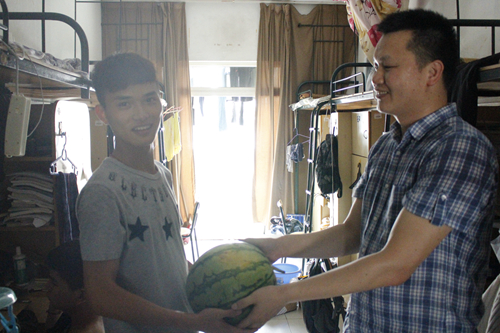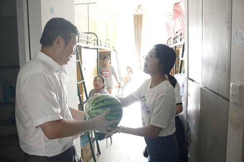 随着气温的节节攀升和酷暑季节的到来,人文传播系秉承“大爱人文,心怀感恩”的优良传统,采取多项措施为学生做好一线服务工作。6月30日下午,人文传播系主任田正、系书记郑国波、副主任陈永丽带队所有班主任、辅导员走访学生寝室,看望正值考试季的在校学生,给每个寝室送一个西瓜,更为他们送去夏日的清凉。