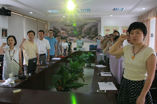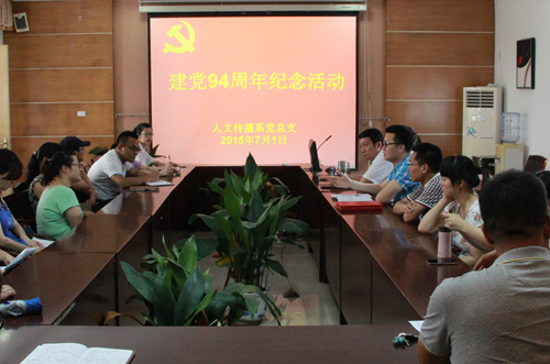 7月1日下午,人文传播系党总支开展“重温入党誓词 纪念建党94周年”活动,系全体教工党员参加了此次会议。系教工支部书记杨爱美老师带领全体教工党员一起宣誓,重温入党誓词,并牢记于心。
