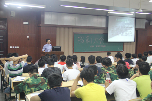 以宣传团学核心文化,为团学发展注入新活力为目的。2015年9月14日,由机械工程系团工委主办的“团学组织招新大会”在好学楼201正式举行。团工委、学生会、自律委员会共计13个部门共同参与了本次大会。学工办张理宠老师出席本次大会,到场新生400余人。