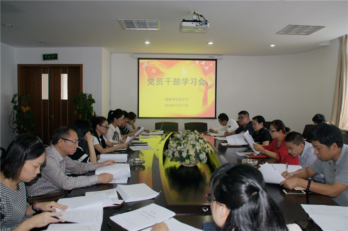 10月10日下午,成教学院党总支开展以“重温党章、坚定理想信念”为主题的学习党章专题教育活动。学习教育活动由党总支副书记张煜主持,党总支委员、全体党员参加。