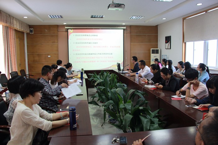 郑国波书记首先向全体党员传达了学院党委、组织部《关于认真做好党章党规党纪学习教育的通知》。其次,郑书记带领全体党员对党章进行了集中学习,他介绍了党章的总体情况,回顾了历届党章,解读了党章新修改的内容和学习了新党章的重点章节。最后,全体党员围绕党章党规党纪进行了讨论。通过集中学习与讨论,每个党员对《党章》精神实质有了更加深入的理解和认识,增强了“守纪律、讲规矩”的政治自觉,进一步坚定了理想信念。