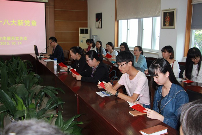 为进一步强化党员党章党规意识和组织意识、纪律意识、规矩意识,人文传播系党总支于10月14日下午开展了“认真学习党章 严格遵守党章”为主题的学习党章专题教育活动,学习教育活动由党总支书记郑国波主持,全体教职工党员、学生党员参加了活动。