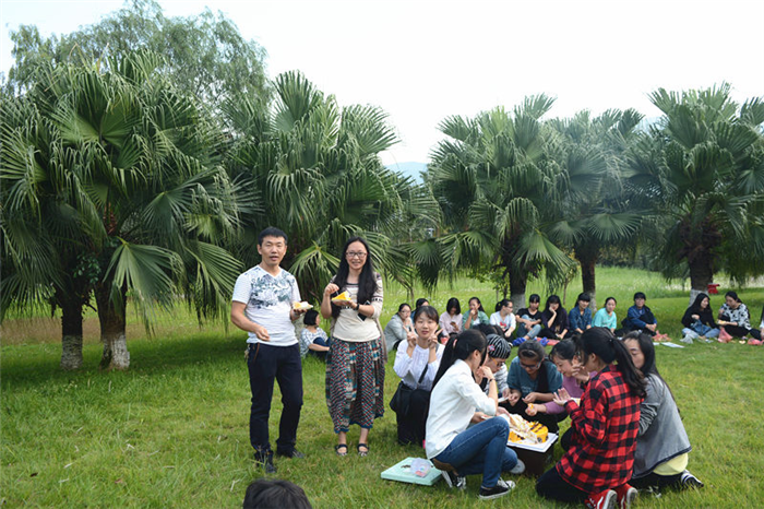 10月19日是会计1409的班日,班主任付强老师和同学们一起在罗山草坪开展“生日快乐,我们的1409”主题团日活动。大家围绕增进同学友谊、加强师生交流、强化班级管理、推进学风建设等话题进行讨论,并开展“踩报纸”、“好汉请抱拳”等互动游戏。党总支副书记吴冰和辅导员程红波老师代表财会系为他们送上美好的祝福以及美味的班日蛋糕,全场气氛十分热烈。