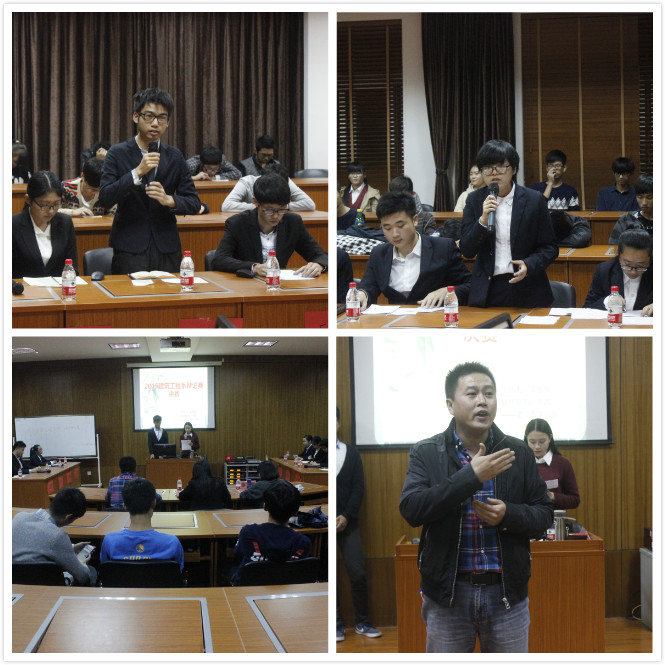 11月12日,建筑工程系辩论赛在力学楼403落下帷幕。本次辩论赛为期1个月,共有12个班级参加,辩论赛初赛、复赛以“学风”、“就业”、“创业”等为主题展开辩论。当晚决赛以“大学生创业,知识和金钱哪个更重要?”为辩题展开辩论。邀请了建筑工程系学工办主任余爽老师、财会系学工办主任马德龙老师、院团委李静老师担任评委。