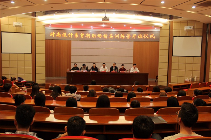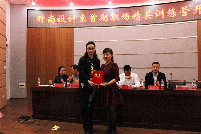 11月18日下午,时尚设计系在正德楼罗山厅隆重举行首期职场精英训练营开班仪式。英国乔金斯家居有限公司副总陈策、温州庄吉服饰公司人力资源部经理李西西、爱弥时光婚礼策划公司董事长张立科、招生就业处副处长金建孟、时尚设计系党总支书记谢肖力、副主任杜少勋、学工办主任徐蓉及职场精英班全体学员参加了开班仪式。