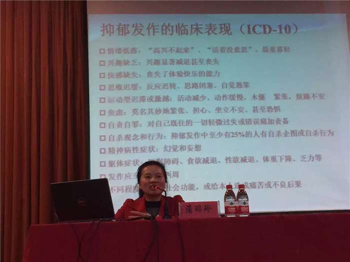 你或你身边的人曾患过抑郁症吗?你对抑郁症了解多少呢?如果得了抑郁症到底该怎么办呢?为帮助同学认识和重视抑郁症的同时正视抑郁症。11月27日晚,温州市第七人民医院心理咨询中心的潘琳玲医生为我系大一学生开展了以“滚蛋吧,抑郁君”为主题的公益讲座。