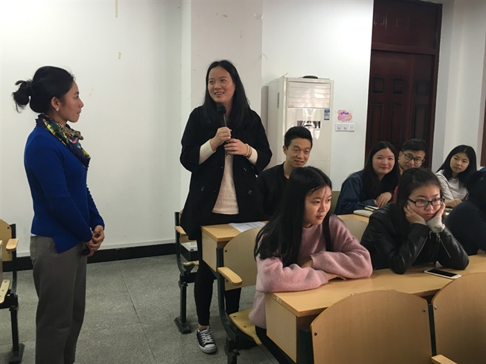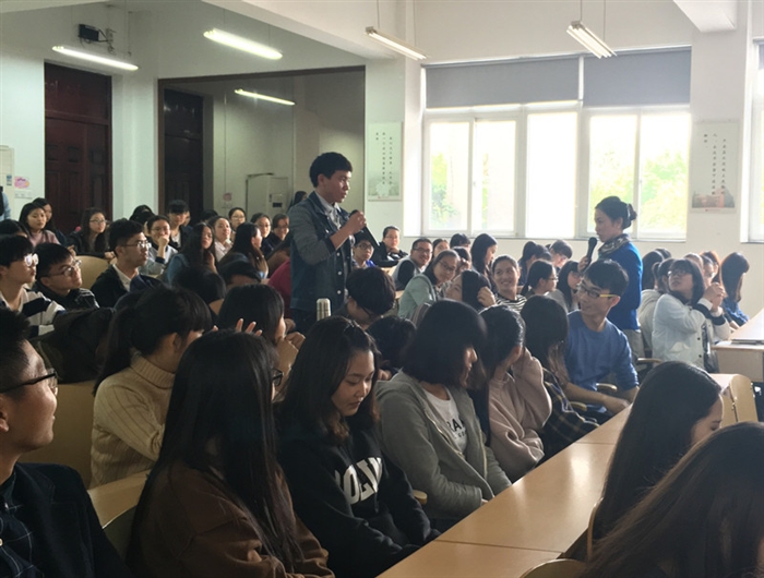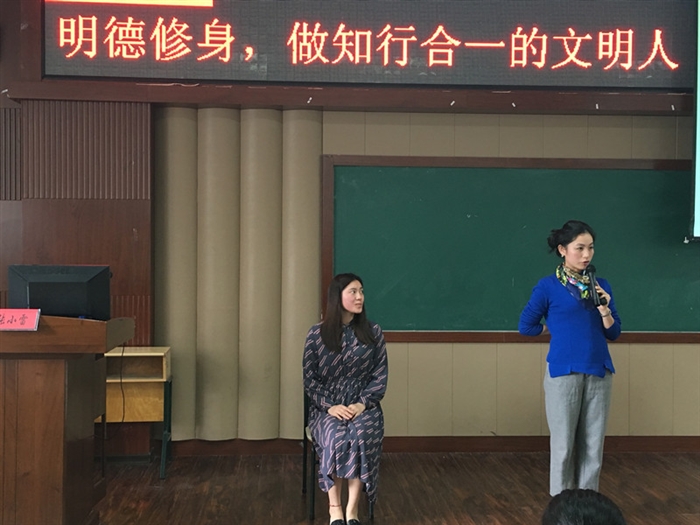讲座伊始,张小雷老师以一套简单有趣的手指操带动了讲座的气氛。互动过后,张老师从仪表礼仪、仪态礼仪、见面礼仪、名片礼仪、电梯礼仪五个方面介绍了学生以后进入职场需要注重的基本文明礼仪。同时,张老师从现场随机抽取了学生为大家示范标准的坐姿站姿。讲座最后,老师引用莎士比亚、丘吉尔等名人的话强调了文明礼仪在生活中的重要性,希望学生在以后的生活中注重自身修养,养成良好的学习生活习惯。