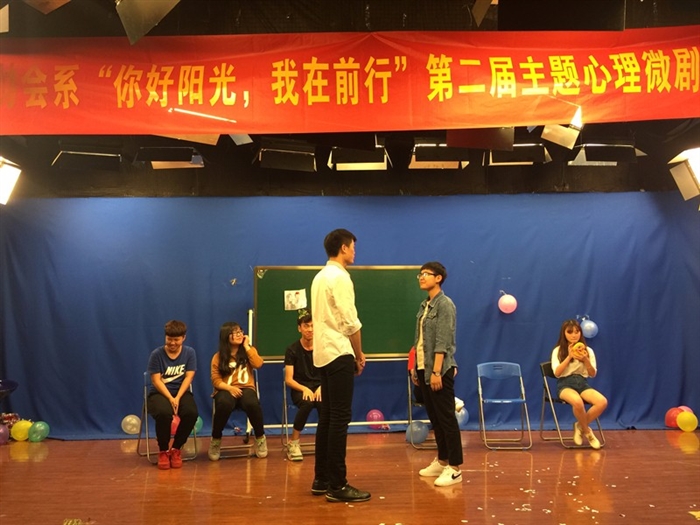 5月初为第三阶段,主要筹备策划心理微剧大赛。本次比赛在人文系演播厅举行,同学们编排了精彩的情景剧,演绎了大学生活遇到的心理困惑、心理烦恼等问题,借此提醒同学们要勇敢面对心理困惑,积极向老师、父母和同学求助,培养健康积极的心理素养,度过快乐的大学时光。