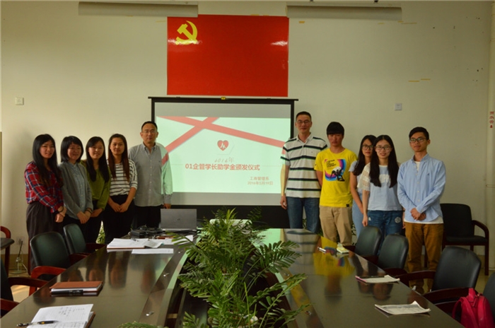 “01企管学长助学金”是由01级企管专业的学长们专门设立的,于2014年正式启动。主要是面向企管专业家庭经济困难的在校学生,大一与大二每班各一个名额,每生资助3000元,帮助他们顺利完成学业。