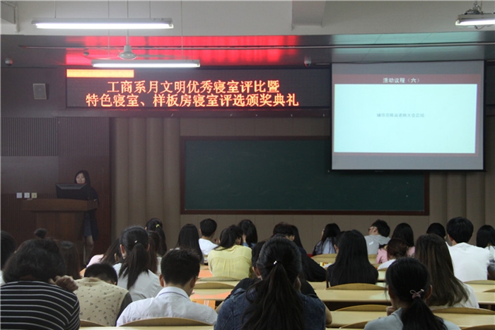 5月24日中午,工商系在善学楼101教室举行了月优秀文明寝室表彰大会,辅导员陈宙老师以及大一大二全体寝室长参与了此次大会。