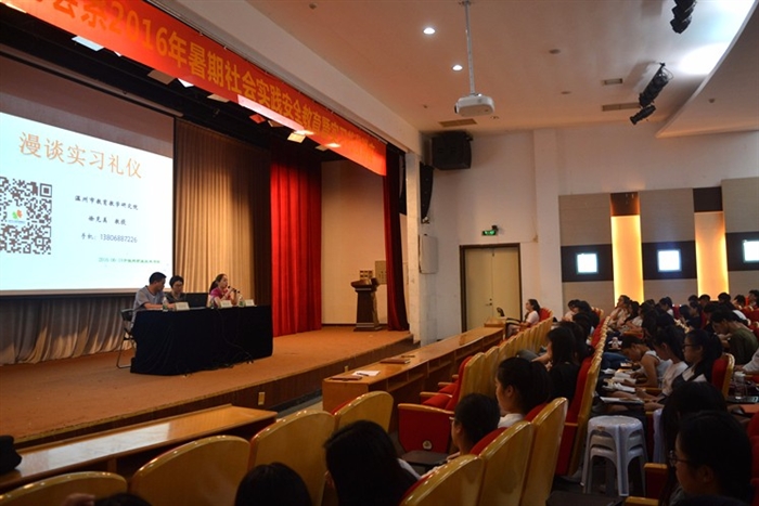 为了确保2016年暑期实践工作的有序开展和学生的健康安全,财会系根据本系暑期实践工作的整体安排,积极开展实践礼仪培训和安全教育活动。