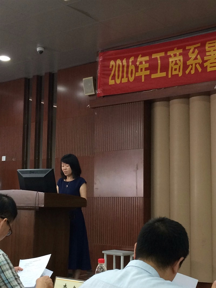 弘扬工匠精神·激励创新创业”的主题,工商系在善学楼101隆重举行2016年暑期社会实践活动出征仪式,这标志着工商系2016年大学生暑期社会实践活动正式启动。工商系党总支书记李建中、副主任何海怀、副主任周晓敏、各教研室主任,全体暑期社会实践团队指导老师及实践队员出席了本次出征仪式。仪式由李建中主持。