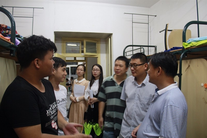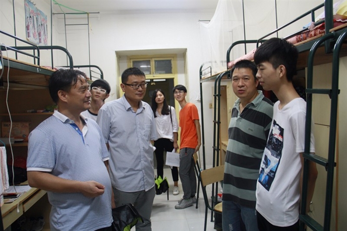 9月13日,机械系迎来了活力满满的“新生”力量。晚上六点半,机械系副主任游震洲老师、副主任宋荣老师、学工办主任梅碎彬老师等一行,深入学生宿舍走访慰问新生。
