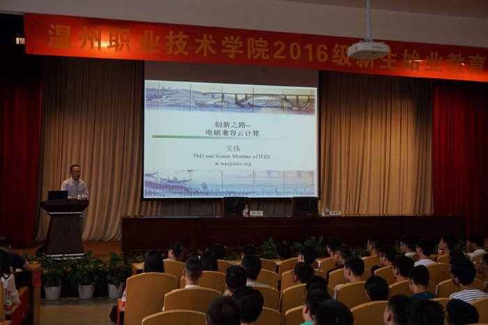 本次典礼我们邀请了优秀校友吴伟博士作了《创新之路--电磁兼容云计算》专题报告,吴伟博士从哲学角度引入话题,用风趣幽默而又专业的语言为在场的电气系新生们上了一堂内容丰富、专业性极强的始业教育课,也为同学们今后的专业学习指明了方向。