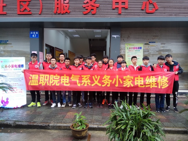 (电气系通讯员 赖黄伟)11月12日,电气系10余名青年志愿者秉着服务社会、服务大众的意识精神来到鹿城区洪殿社区开展以“义务小家电维修”志愿者服务活动。