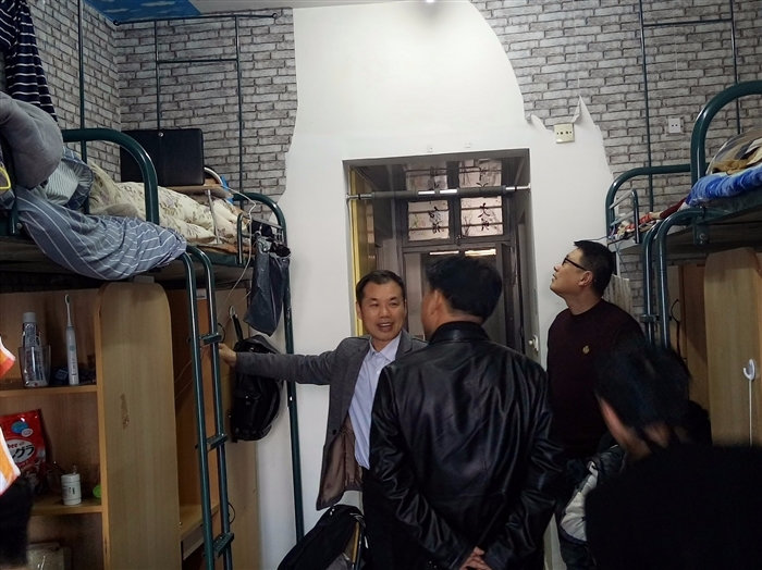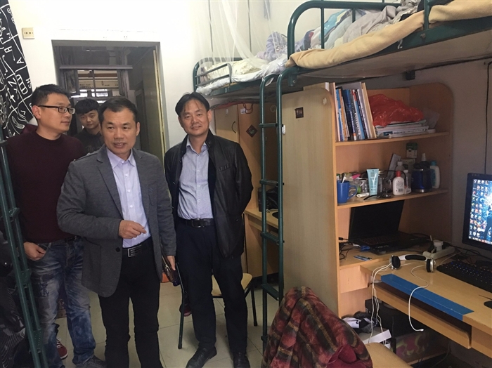 12月22日上午,机械工程系党政班子领导一行走访系部学生公寓,检查学生公寓是否存在安全隐患问题。系党总支书记黄加銮在检查过程中与学生们进行深切交谈,叮嘱学生要注意公寓安全,切勿私拉电线或在床铺上使用插座。