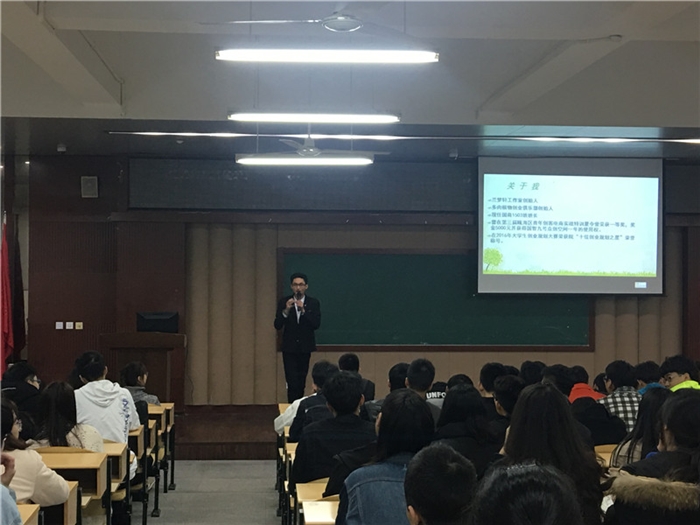 (工商系通讯员 许春雷)3月19日晚,工商系在善学楼101教室举行了以“我与创业有个约会”为主题的学子讲坛。此次学子讲坛,由工商系兰梦轩工作室创始人、多肉植物创业俱乐部创始人、国商1503班班长沈炎鑫担任主讲人。