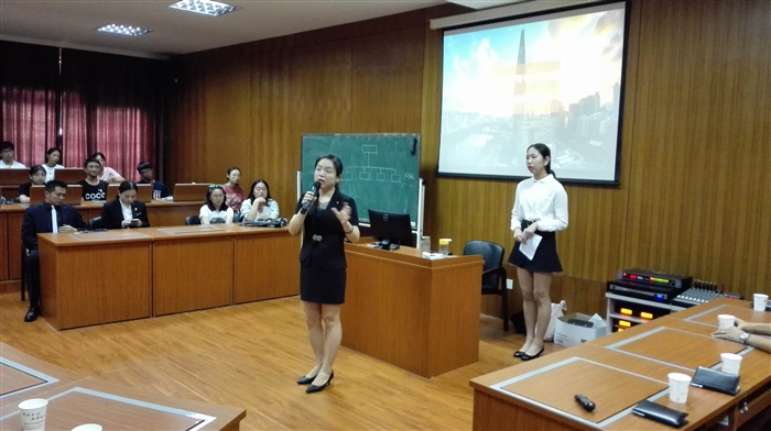 与以往单纯的专业介绍不同,此次始业教育由专业负责人说专业、专业教师说课程、企业领导讲校外实训、师生互动谈学习四个板块展开。专业负责人刘小方老师给同学们简明扼要介绍酒店管理专业的“现代学徒制”人才培养模式后,在场的7位专任教师一一登场,用生动、幽默的语言向大家介绍了自己担任的课程,陈洁坊老师以一口流利的英语为同学们讲述了英语口语在酒店管理专业的重要性,掀起了会议现场的第一个小高潮。