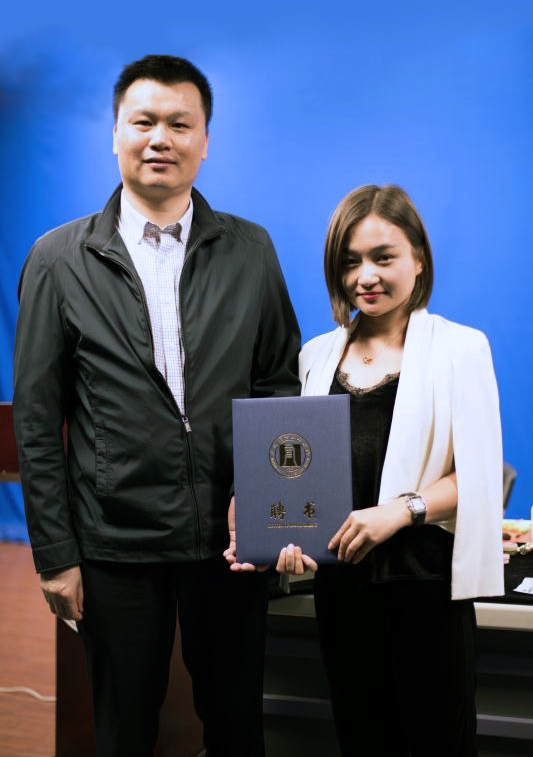 讲座结束后,人文传播系党总支书记郑国波向杨艺婷颁发聘书,聘请杨艺婷为温州职业技术学院人文传播系客座教授。