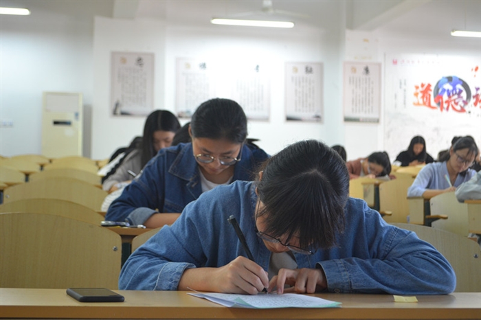 工商管理系于10月中旬举行了征文比赛的初赛,经过严格评选,47名学生晋级决赛。决赛现场,参赛学生仔细审题、认真构思,围绕主题自选角度书写文章,并结合实际情况,思考“立匠心 铸匠魂”的内在含义,经过一个多小时,参赛学生陆续完成比赛作文。