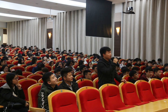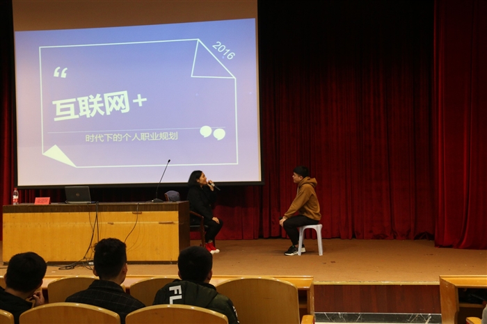 余建妹详细介绍了面试技巧,围绕“如何介绍自己的实践经验和优缺点”这一问题,她邀请台下学生进行面试演习,并根据同学们的场上表现进行针对性指导。同学们踊跃发言提问,余建妹对于同学们提出的就业问题一一解答,并提出诸多建议。她建议同学们要充分了解自身优势劣势,分析机会威胁,判断发展方向,进行更加清晰的职业生涯规划。