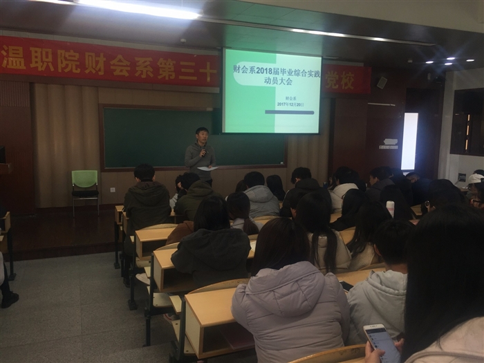 (财会系通讯员 王丹霞、程红波)为了让2018届毕业生了解毕业综合实践的重要性,做好实习和就业的充分准备,财会系于12月20日下午在崇学楼101教室召开了2018届毕业生毕业综合实践动员大会。财会系副主任简家进、王赛芝、各教研室主任等,针对500余名毕业生开展动员工作。