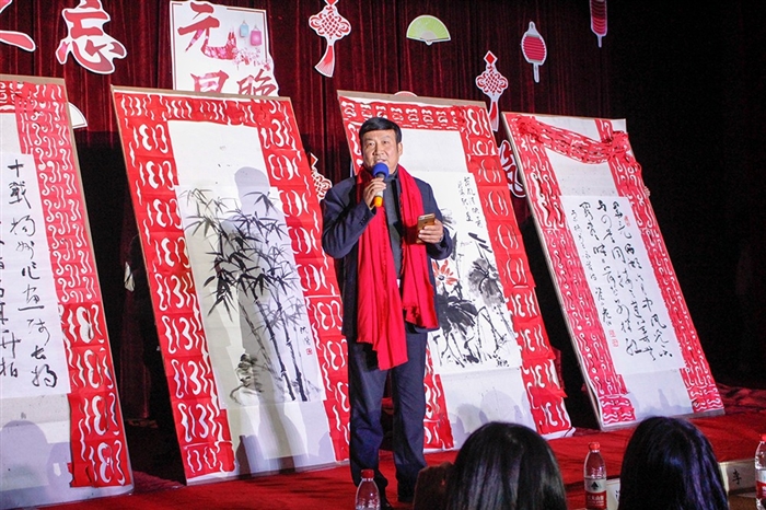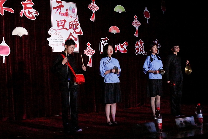在开场舞《Gashina》的动感音乐中,元旦晚会正式拉开了序幕。整场晚会节目精彩纷呈,高潮迭起。由新生班级带来的相声《奋斗》和《三句半》节目展示了新生在校丰富的学习生活和奋斗目标,引得现场笑声不断,掌声不绝;《走秀》与《民乐串烧》则为观众带来了一场视听盛宴,展示了中华民族传统服饰之美与中国民族音乐的魅力;由田正教授、传媒教研室主任沈潜老师与传媒班学生共同带来的《古声古韵》节目掀起了晚会的高潮,师生共创竹与荷之画,书写竹与荷之诗,展示了精湛的书画技艺,不仅为我们带来“平平安安,和和谐谐”的新年祝福,同时也体现了工匠精神的传承;朗诵《少年中国说》和音乐剧《年少有你》展示了新时代青年的风采,赢得了现场观众雷鸣般的掌声和欢呼声。