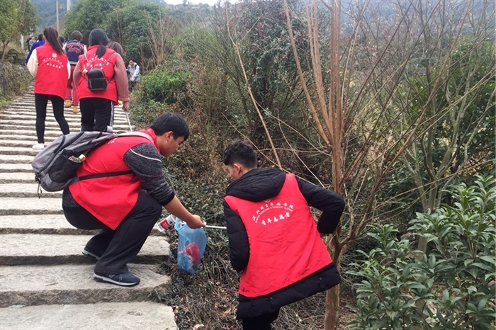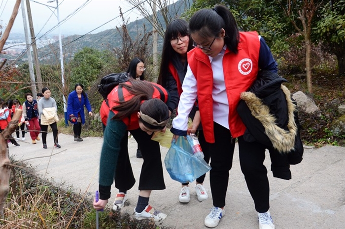 本次毅行从温职院茶山校区出发,经金林大酒店、五美景园、国家级游步道路线,最终达到终点——龙王庙水库。为了提升毅行的意义,活动还加入了“环保相伴,守护青山”的公益理念,负责清扫沿途的垃圾,保持大罗山一片洁净。师生一行分为5组,前行途中,同学们或钻入树林、或跳下沟壑,认真将丢落在地的饮料瓶、烟盒烟头、果皮纸屑等收入垃圾袋。各个小组既相互竞争、又彼此合作,大家一路上谈笑风生,尽享毅行的快乐。