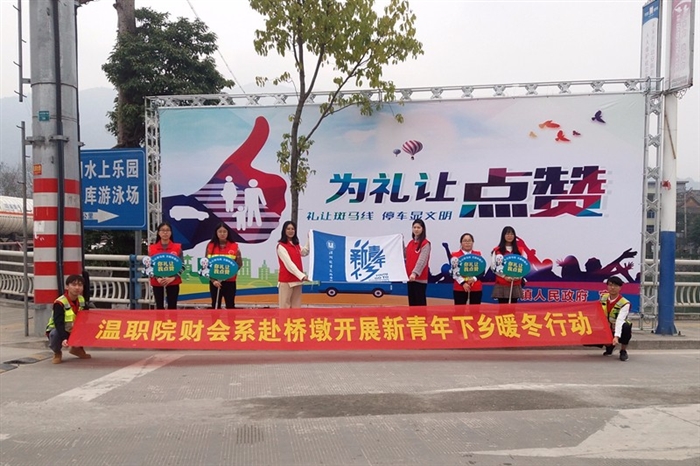(财会系通讯员 程红波)1月19日,财会系青马工程学员前往苍南县桥墩镇协助开展“礼让斑马线”活动。