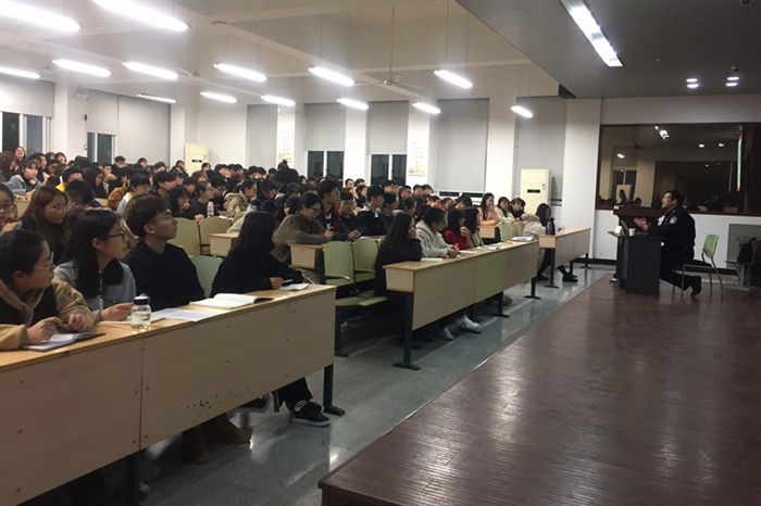 本次讲座,朱勇围绕110报警、防盗防骗、校园贷陷阱、防毒拒毒等方面进行讲解。针对学生常用的110报警电话,朱勇普及了相关报警知识,告诉同学们要珍惜警力资源,科学正确地使用报警电话,依法保护自身安全。朱勇根据多年的从警经验,结合高教学区实际案例向同学们讲授了防盗防骗的知识和技巧,并郑重警示学生一定远离校园贷,培养合理的消费观念和行为。针对青少年毒品犯罪,他讲解了一些常见的毒品类型和大学生涉毒案例,告诉同学们要远离不良分子,坚决杜绝毒品。