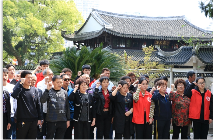 在革命烈士纪念碑前,同学们与社区的党员们怀着无比崇敬的心情向烈士敬献花圈、行鞠躬礼,并重温了入党誓词。社区老党员带领同学们参观了纪念馆,并向同学们讲解温州革命烈士们的英勇历史 ,勉励同学们向革命烈士学习。