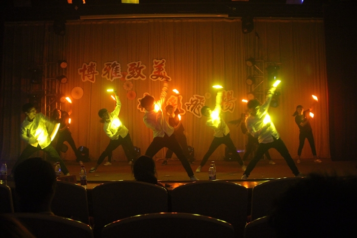 晚会在街舞协会的《Havana&bboom》热舞中拉开帷幕。随后,动漫协会的《将近酒 舞蹈》表演,绚丽的动作,精妙绝伦的表演,让人赏心悦目;魔方协会带来的《分解复原》带领观众玩转魔方,让人眼前一亮;青露协会的《荧光舞》让在场师生感受了神奇的视觉盛宴。