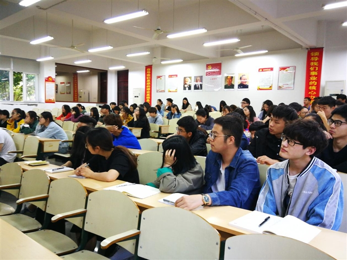 (信息技术系通讯员:李丹)为深入推进“两学一做”学习教育常态化制度化,进一步深入学习宣传贯彻党的十九大精神, 4月18日下午,信息技术系党总支书记黄加銮在好学楼“党员之家”开展“中国共产党的光辉历程”专题讲座。信息技术系学生党员、入党积极分子以及业余党校学员参加了本次学习。