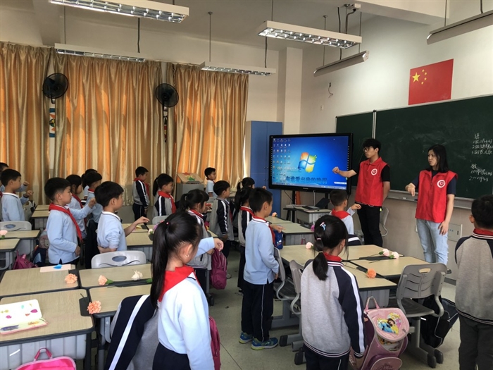 (工商管理系通讯员 孙玲玲)在母亲节来临之际, 5月11日下午,工商管理系“匠心花艺俱乐部”和“心言手语社”走进温州大学附属茶山实验小学开展以“爱在心中,感恩最美”为主题的感恩母亲节活动,让孩子们从小学会尊重、孝顺母亲\懂得感恩。