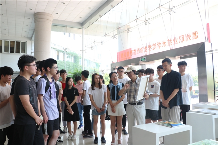 曾维华逐一审阅点评了学生作品:“部分学生临摹的作品具有较高的专业水准,配色、布局、工艺处理都颇具匠心。”他还现场介绍了好作品需要具备的要素,并传授学生在日常生活中提升绘画水平的方法。