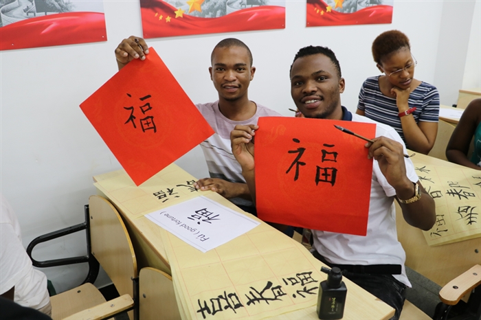 (学生处通讯员 贾书海)5月18日下午,由我院学生处组织的南非留学生书法体验活动在思行楼顺利举办。来自南非的25名留学生参与了此次活动。