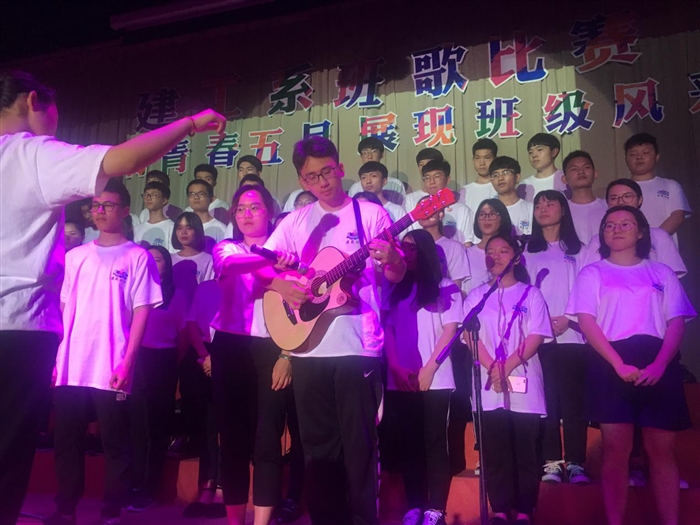 (建工系通讯员 包邦胜)5月18日晚,建筑工程系在树人堂举行了以“唱响青春五月,展现班级风采”为主题的红五月班歌大合唱比赛。建筑工程系党总支书记金建孟,学工办全体老师、大一班主任参加活动。