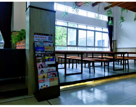 原木色的书架与餐厅的休闲风格完美融合,“图书进学生餐厅”极大地提升了餐厅的文化格调,让师生感受文字的麻辣咸甜;学生宿舍内一排排的图书,浓郁了校园的书香气息。