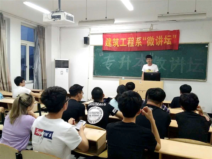 (建筑工程系通讯员 王丛思)为鼓励学生积极提早规划,尽早备考“专升本”,建筑工程系于5月31日晚在敏行楼506A教室成功举办“‘专升本’备考经验分享”“微讲坛”。2018年“专升本”考试成绩优异的苏郑祥、宋南、胡锦鹏和林镇等4名学生担任主讲,分享了“专升本”备考经验。大一、大二30余名学生自愿报名参加了活动。