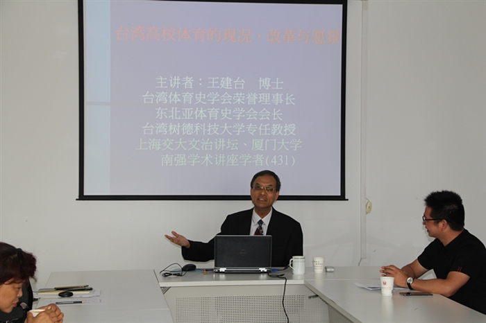 据悉,王建台教授是台湾体育运动史学会理事长,东北亚体育运动史学会会长,上海交通大学和厦门大学讲座学者,浙江师范大学、福建师范大学和成都体育学院等高校的客座教授,热心于海峡两岸的体育文化学术交流和民间交往,具有较高的国际知名度与影响力。