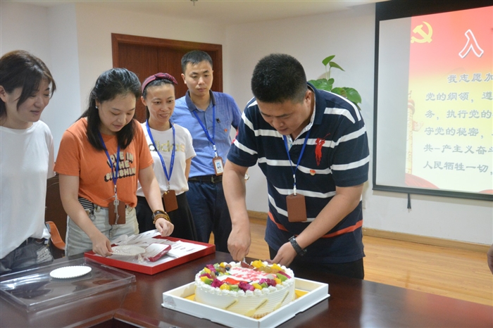 在“七一”前后,为了让党员同志们过上一个富有意义的集体政治生日,瑞安学院党总支做了充足准备,提前自己设计生日蛋糕。在活动现场,党总支向每位党员赠送了党徽,组织党员同志们重温入党誓词。分享生日蛋糕现场,气氛更是其乐融融,部分党员同志谈了入党这些年来的感受与体会。