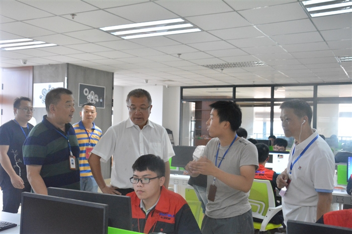 考察团一行重点参观了瑞安学院实训基地金工车间、技术研创服务中心、鸿一箱包电商孵化基地、名澳电商创业实训基地,并与实训实践队学生亲切交谈。调研过程中,谷智静介绍了瑞安学院的基本概况、办学特色和产教融合成效,就“双元制”定向培养模式作了详细讲解。