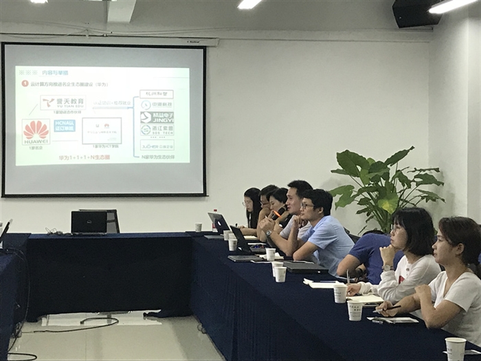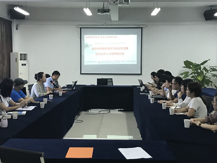 会上,网络专业带头人刘世华博士简介了计算机网络技术专业近年来在学生培养中取得的优异成绩和龙头专业的建设思路。各企业代表积极发言,为华为名企生态圈人才培养模式的落地实施献计献策,并就课程合作与建设、华为云计算认证、华为ICT技能大赛、华为人才双选会、HCIE标杆工程等进行了充分的交流。