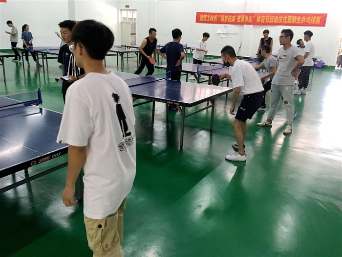 (通讯员 建筑工程系王丛思)为鼓励同学们养成强身健体的良好习惯、发挥体育拼搏精神、增强班级凝聚力,9月26日,建筑工程系在体育馆一楼举行2018年“筑梦扬威 奋勇争先”体育节启动仪式暨新生乒乓球赛。建筑工程系党总支书记金建孟、思政辅导员、班主任以及400余名大一新生参加了活动。